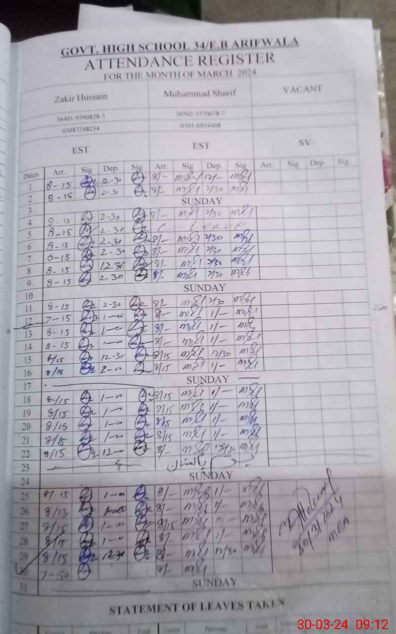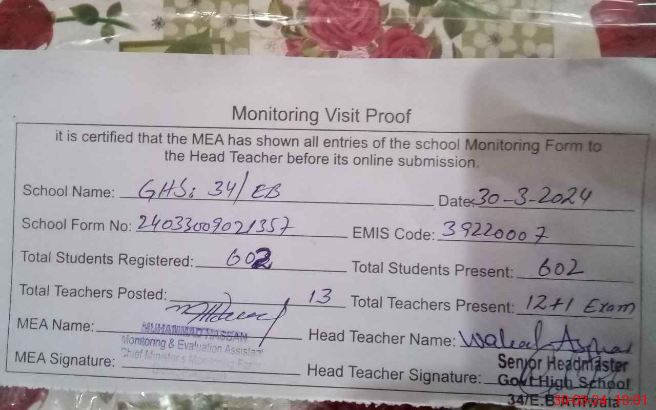 | EMIS Code: 39220007 | Name of School: GHS 34 EB ARIF WALA | |||