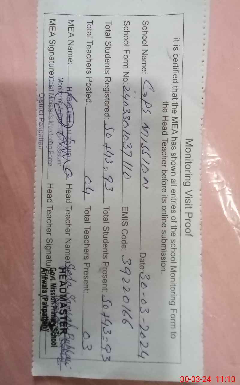 | EMIS Code: 39220166 | Name of School: GPS MISSION BLOCK G | |||