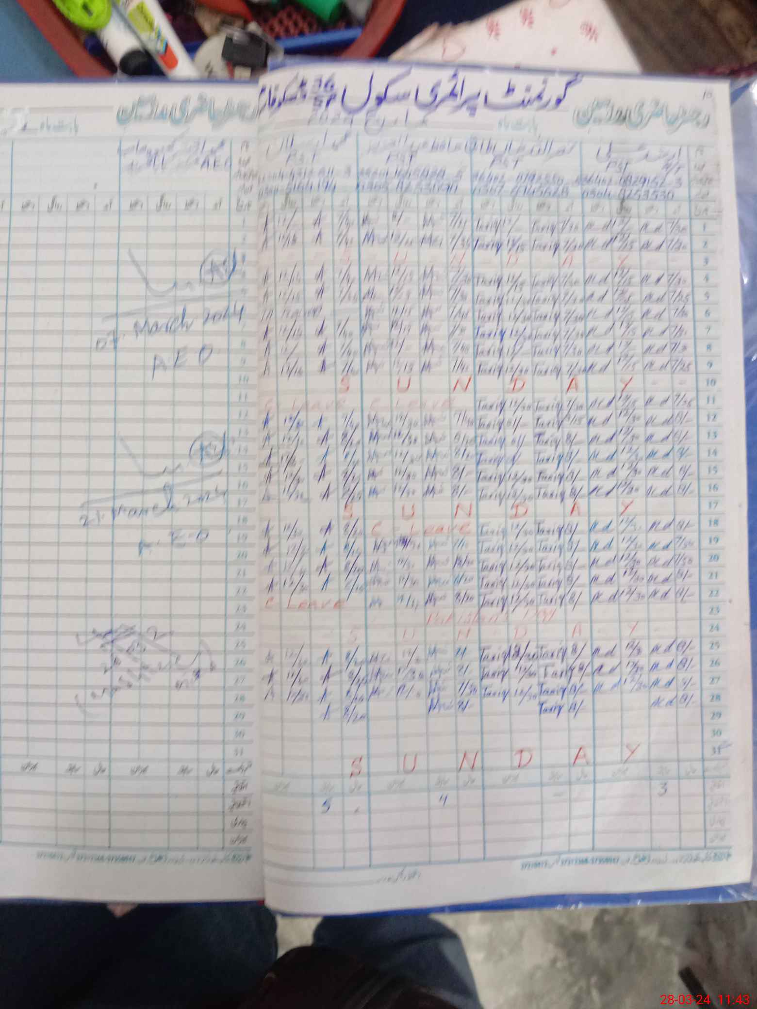 | Leave | Duty | Absent | Maternity | Medical | Ex- Pak |