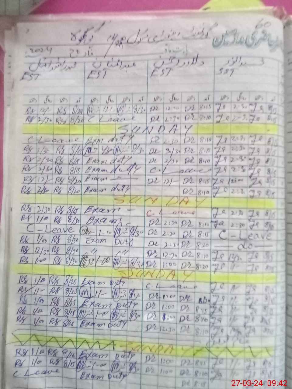 | 36**** | Ab**** Ma**** | EST | Regular | 0 | 0 | 0 | 0 | 0 | 0 | 0 | 0 | 0 | Exam Duty |