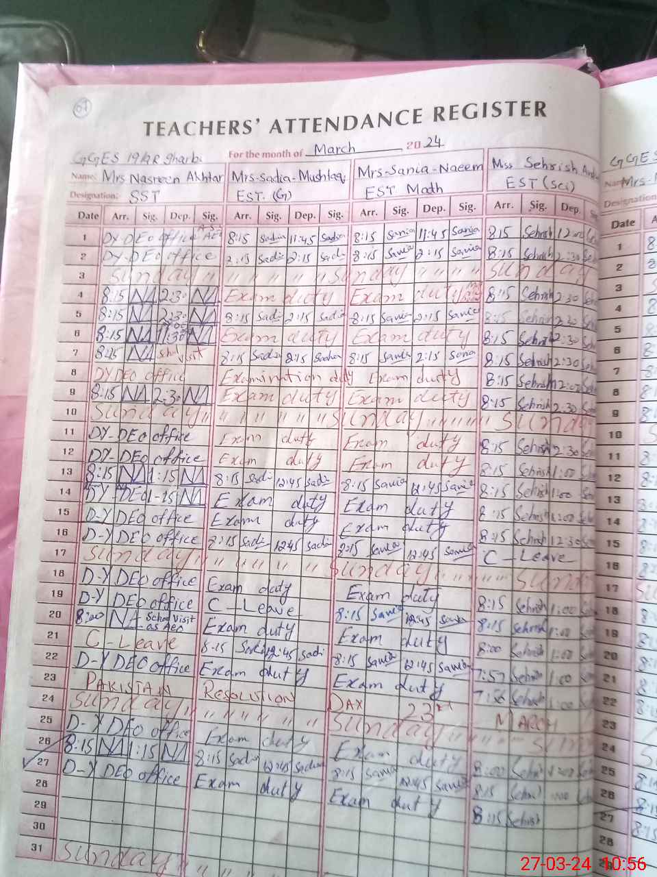 | 45**** | Sa**** Na**** | EST | Regular | 0 | 0 | 0 | 0 | 0 | 0 | 0 | 0 | 0 | Exam Duty |