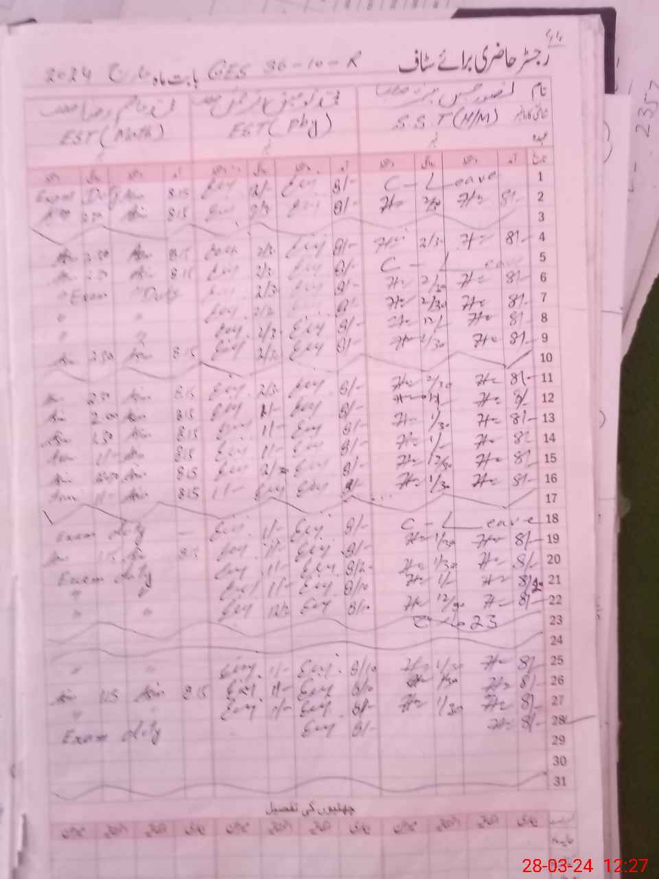 | 36**** | Mu**** As**** Ra**** | 3 | 1 | 0 | 0 | 0 | 0 | 0 | 0 | 0 | 0 | 0 | Exam Duty |