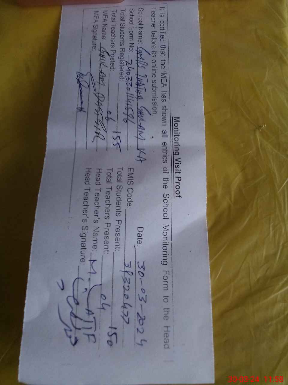 | EMIS Code: 39320477 | Name of School: GMPS THATHA GHULAM KAY | |||