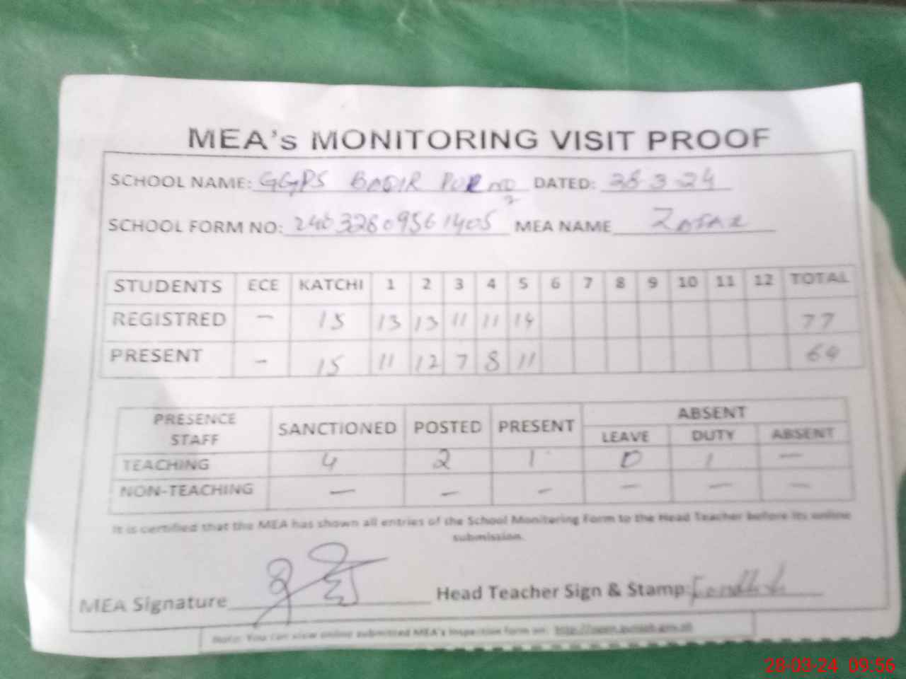| EMIS Code: 36410437 | Name of School: GGPS BAQIR PUR NO.2 SARAI SIDHU | |||