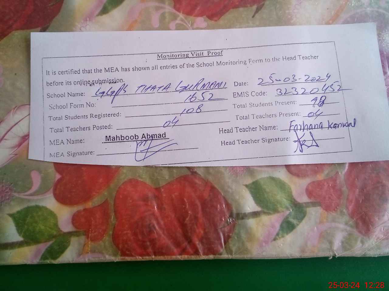 | EMIS Code: 32320452 | Name of School: GGPS THATTA GURMANI | |||