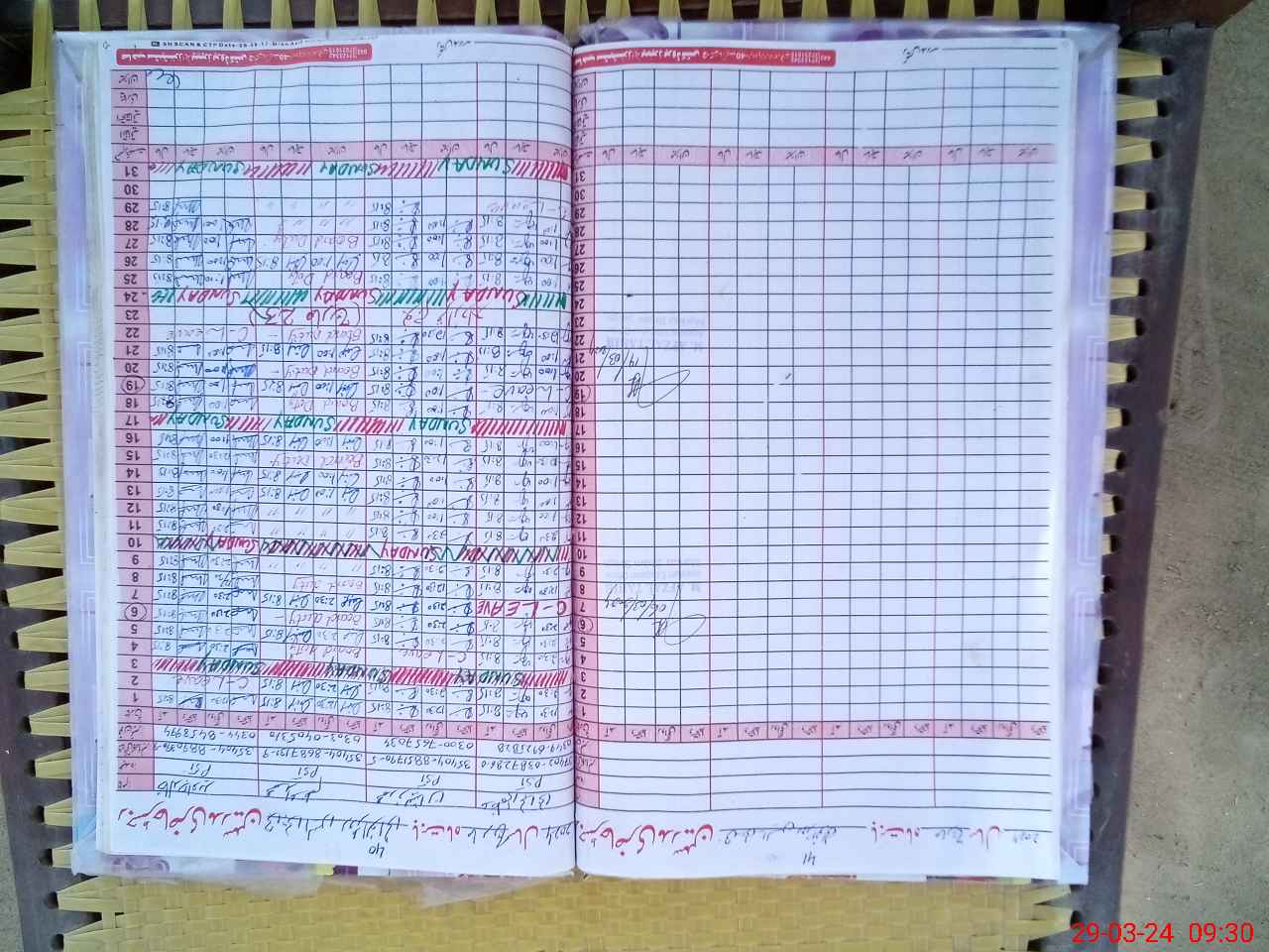 | CNIC | Full Name | Designation | R/C | Absence During Last Calender Month |