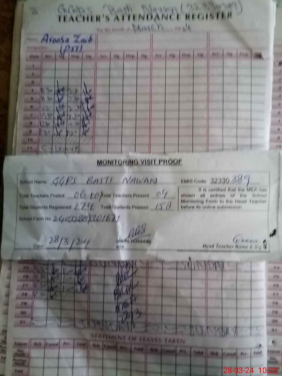 | Attendance Register | Head Teacher | MEA with School | Visit Proof |