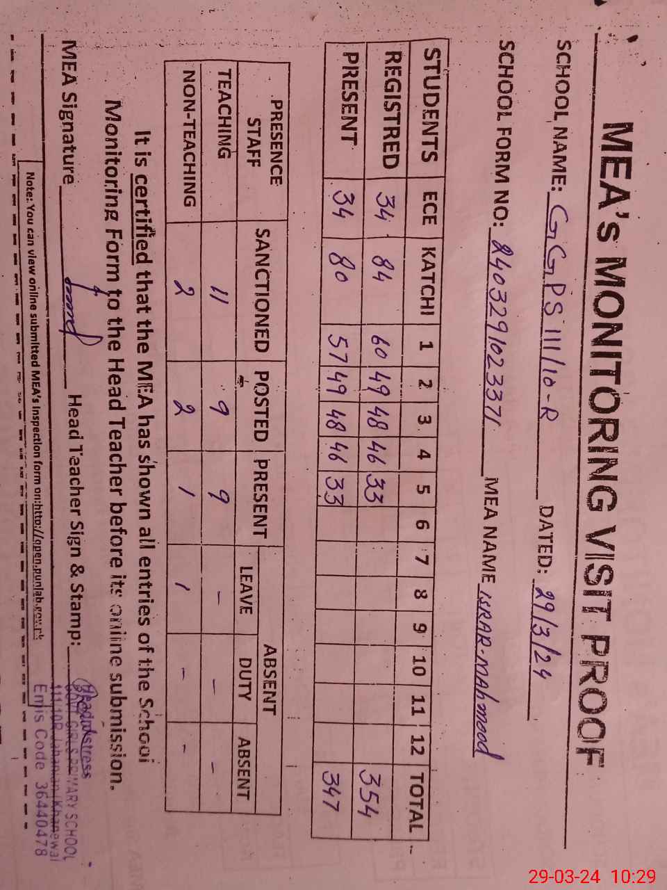 | EMIS Code: 36440478 | Name of School: GGPS 111/10-R, JAHANIAN | |||