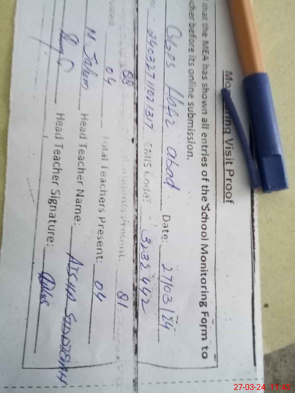 | EMIS Code: 32320442 | Name of School: GGPS HAFIZ ABAD | |||