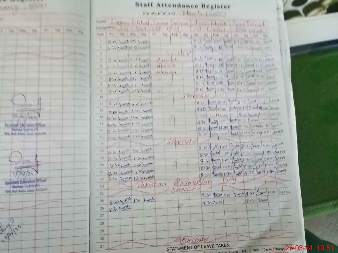 | 32**** | Sa**** Ir**** | 3 | 1 | 0 | 0 | 0 | 0 | 0 | 0 | 0 | 0 | 0 | Absent (Un-Authorized) |