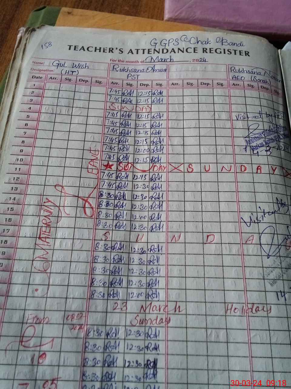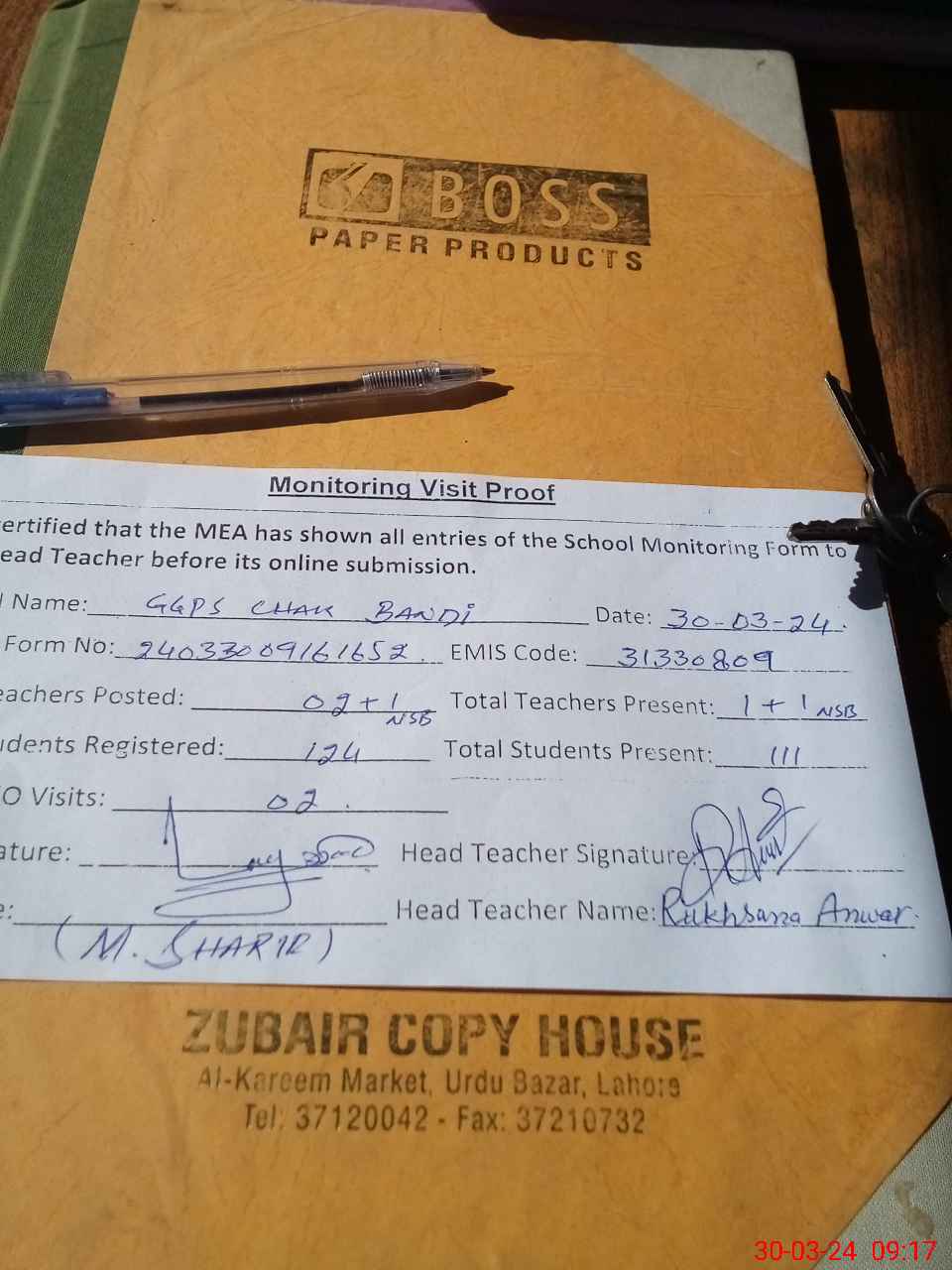 | Attendance Register | Head Teacher | MEA with School | Visit Proof |