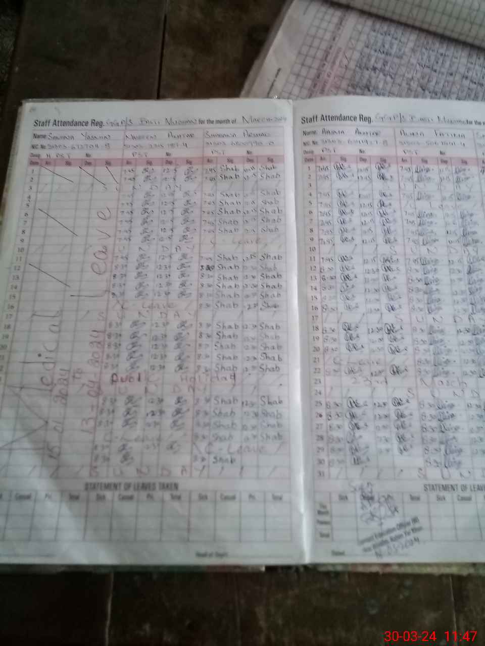 | Leave | Duty | Absent | Maternity | Medical | Ex- Pak |