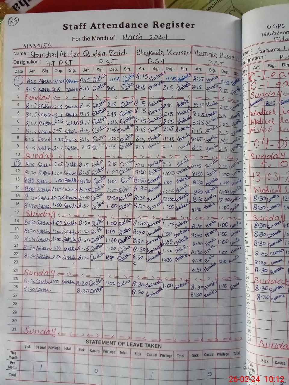 | Leave | Duty | Absent | Maternity | Medical | Ex- Pak |