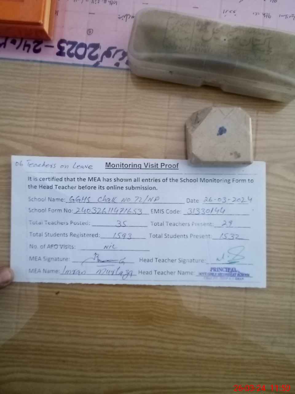 | EMIS Code: 31330144 | Name of School: GGHS CHAK NO. 72/NP | |||