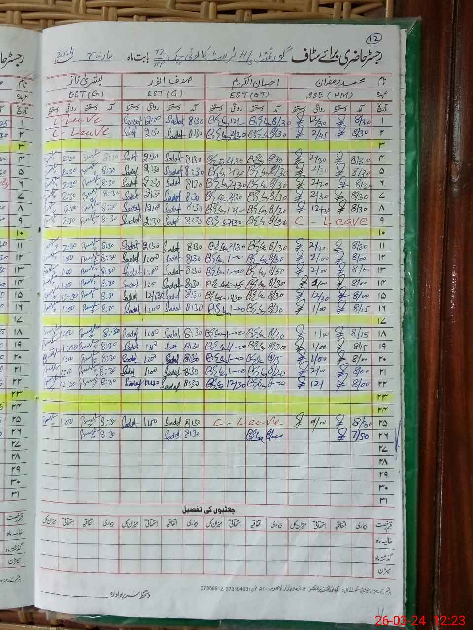 | CNIC | Full Name | Designation | R/C | Absence During Last Calender Month |