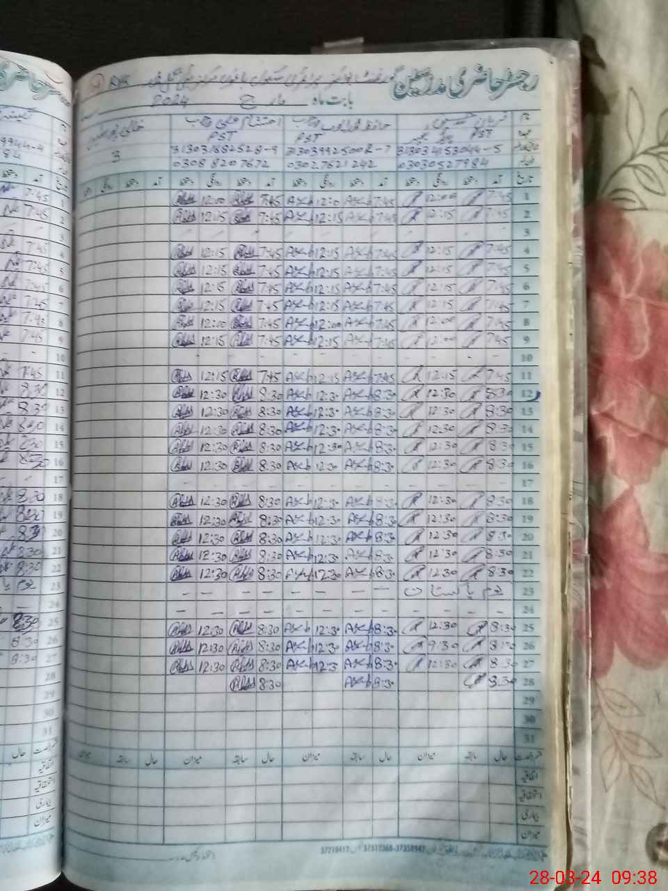 | CNIC | Full Name | Designation | R/C | Absence during last cal. month |