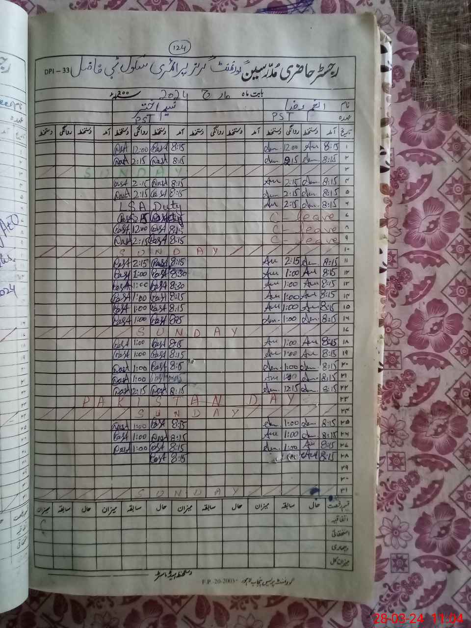 | Leave | Duty | Absent | Maternity | Medical | Ex- Pak |