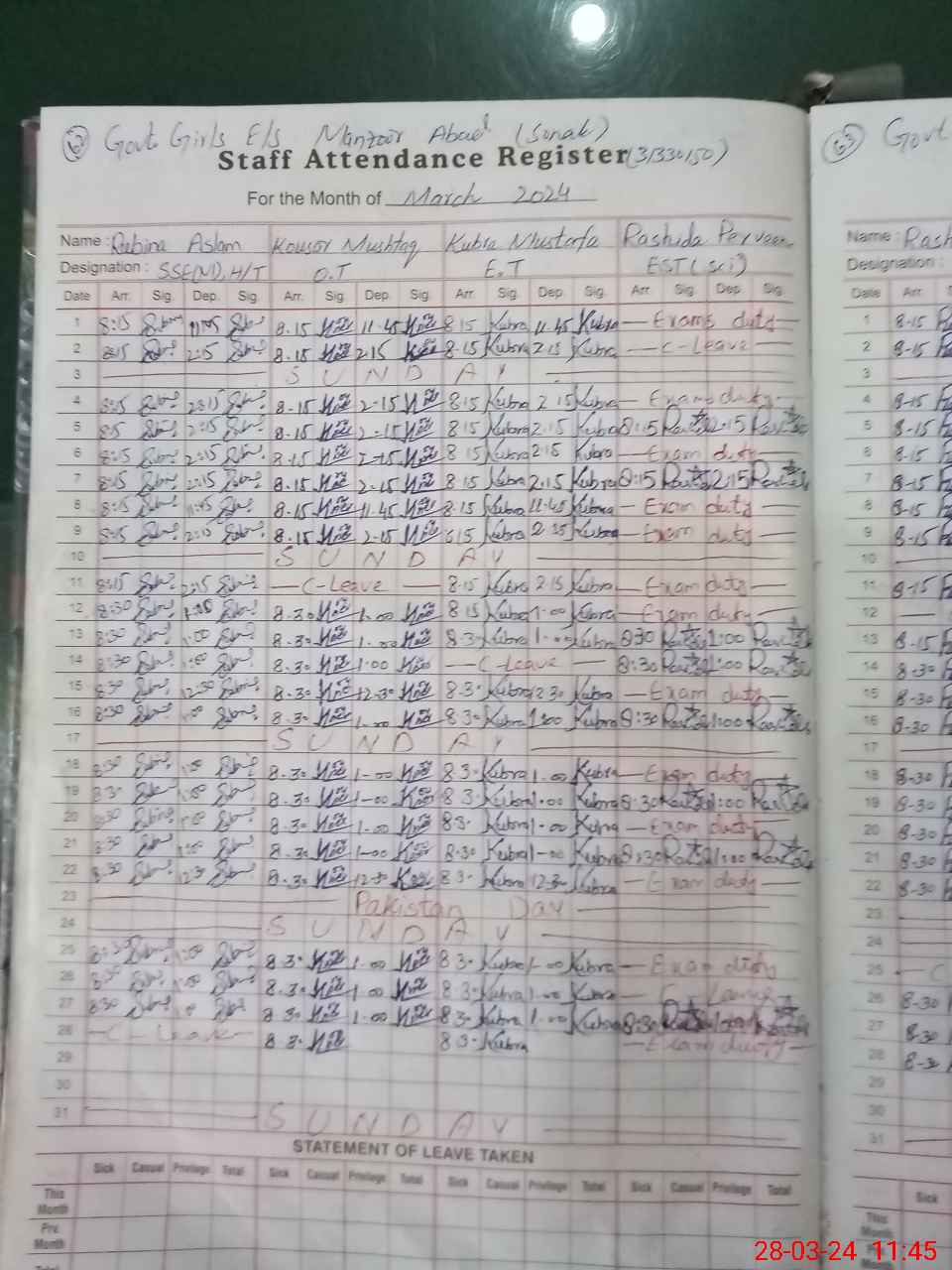 | 31**** | Sa**** An**** | PST | Regular | 2 | 0 | 0 | 0 | 0 | 0 | 0 | 0 | 2 | Maternity |