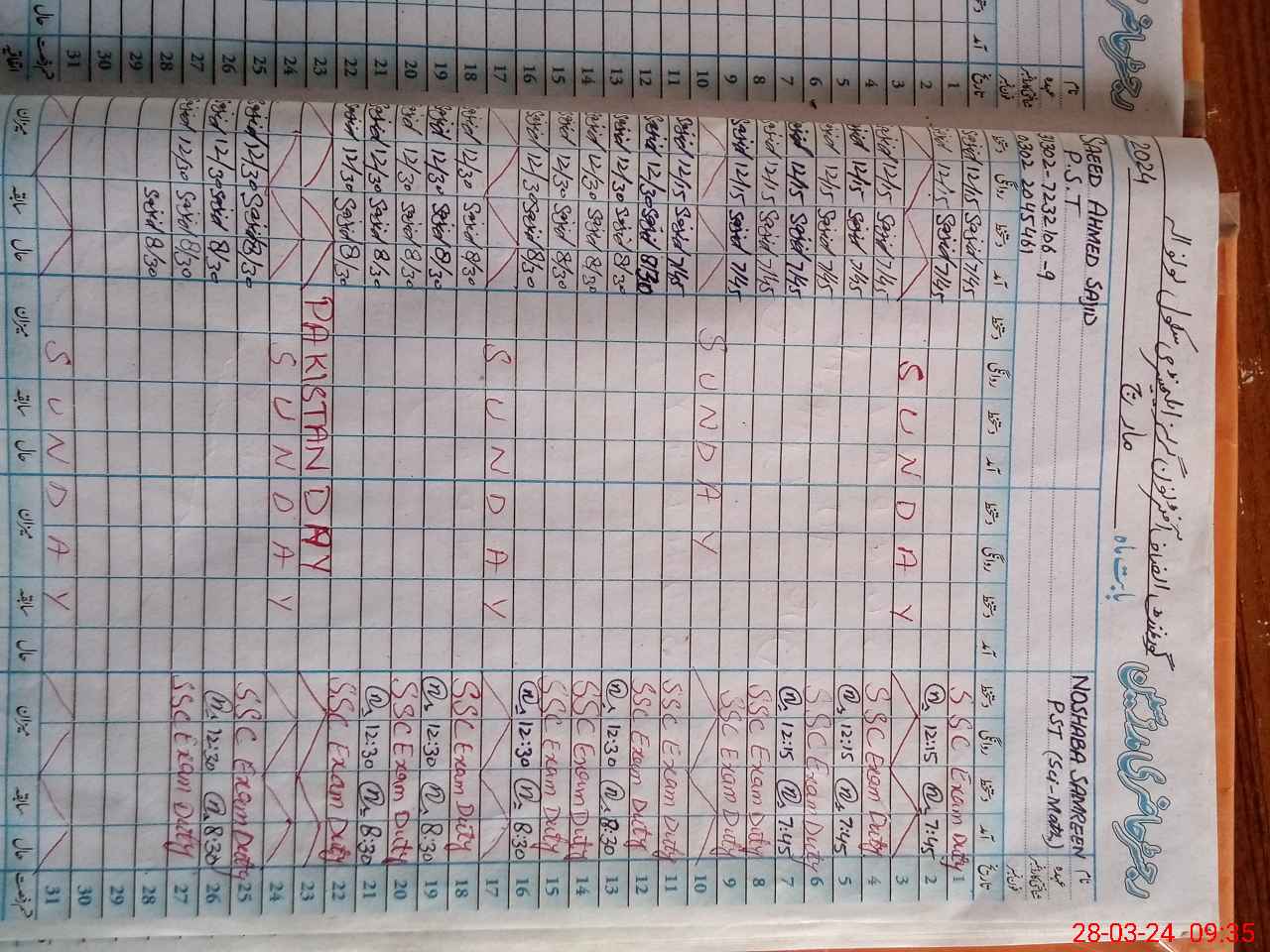| 31**** | No**** Sa**** | PST | Regular | 0 | 0 | 0 | 0 | 0 | 0 | 0 | 0 | 0 | Exam Duty |