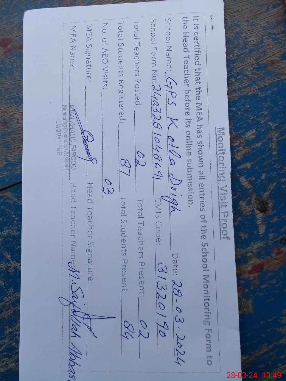 | EMIS Code: 31320190 | Name of School: GPS KOTLA DRIGH | |||