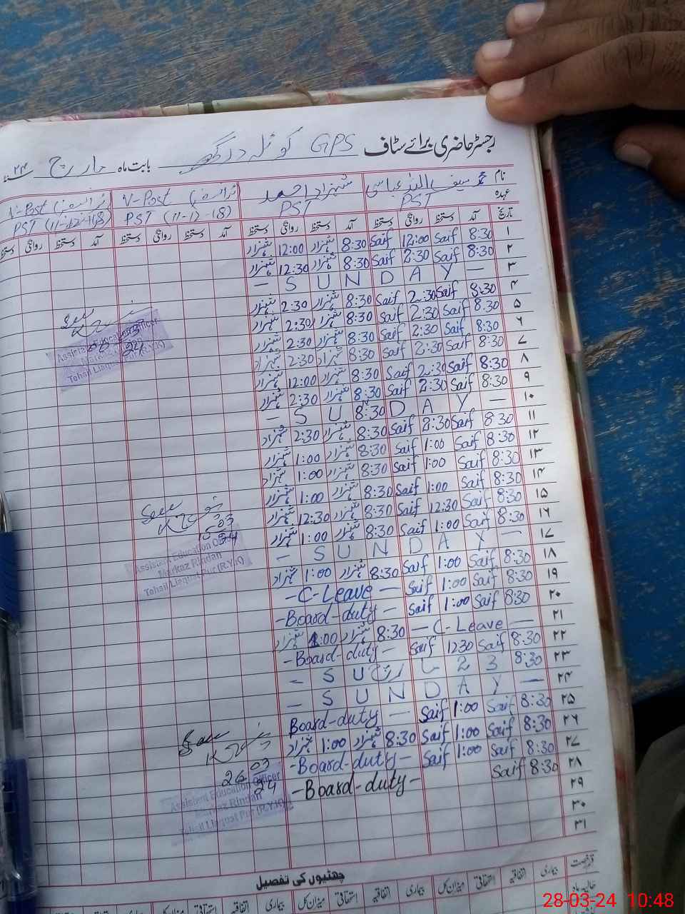 | Name: MU**** SA**** AB**** Designation: (School Headmaster's/Headmistress's) PST Phone/Cell Number: 03**** |