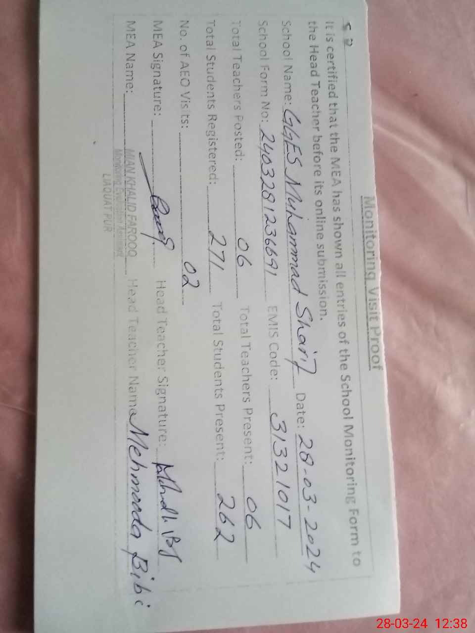 | EMIS Code: 31321017 | Name of School: GGES MUHAMMAD SHARIF | |||