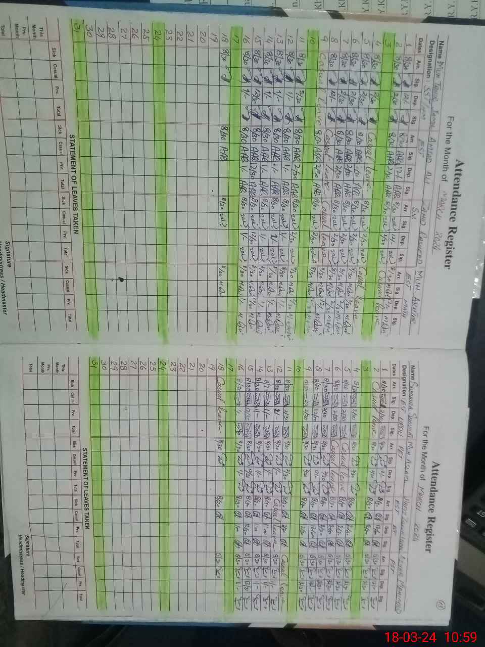 | Leave | Duty | Absent | Maternity | Medical | Ex- Pak |