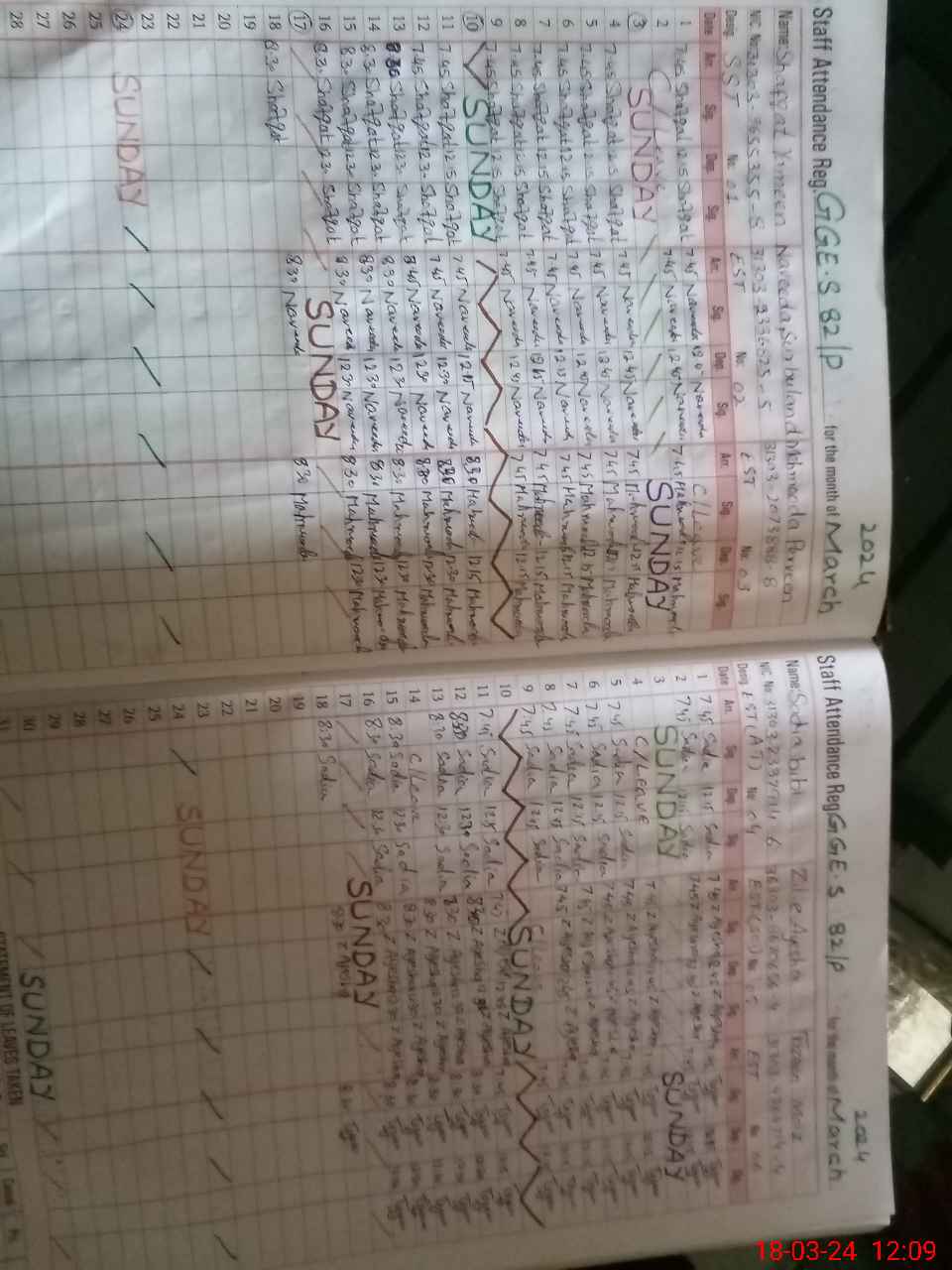 | CNIC | Full Name | Designation | R/C | Absence During Last Calender Month |