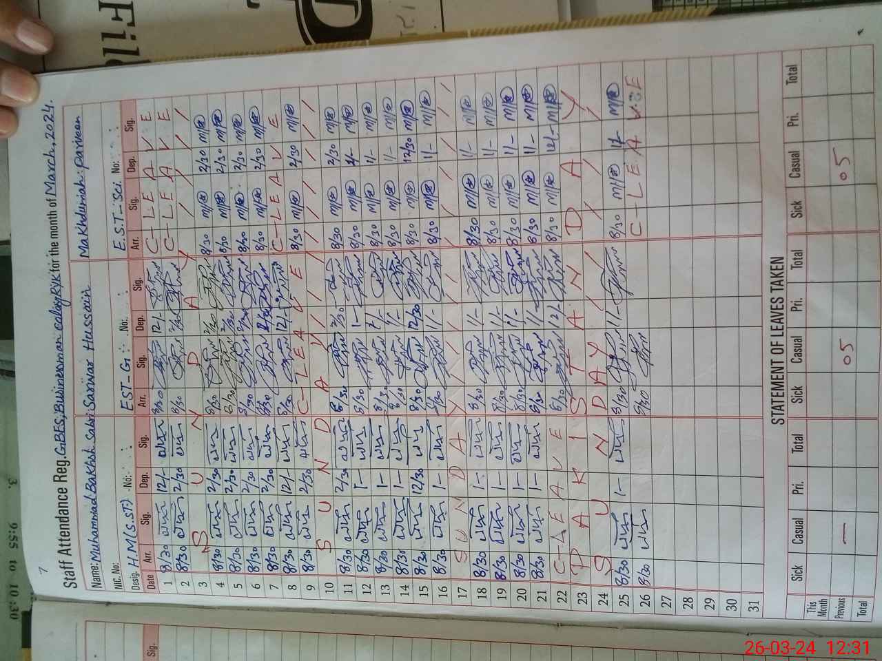 | Leave | Duty | Absent | Maternity | Medical | Ex- Pak |