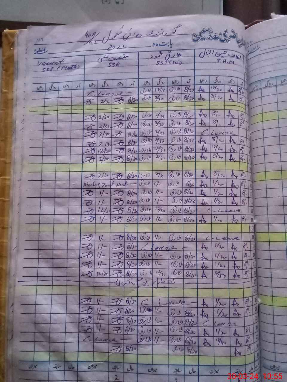 | CNIC | Full Name | Designation | R/C | Absence During Last Calender Month |