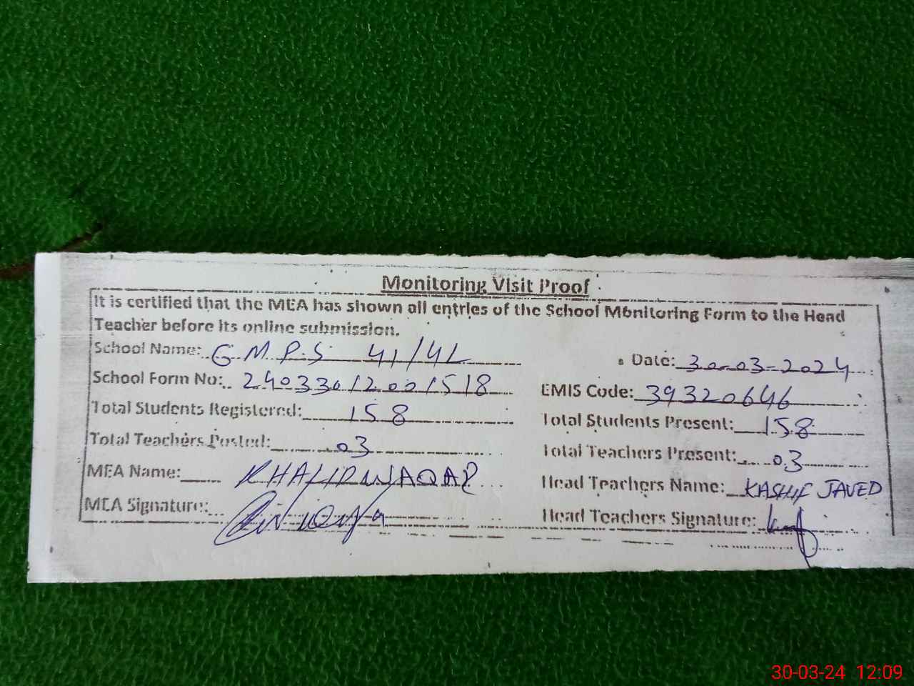 | EMIS Code: 39320646 | Name of School: GMPS 41/4-L | |||