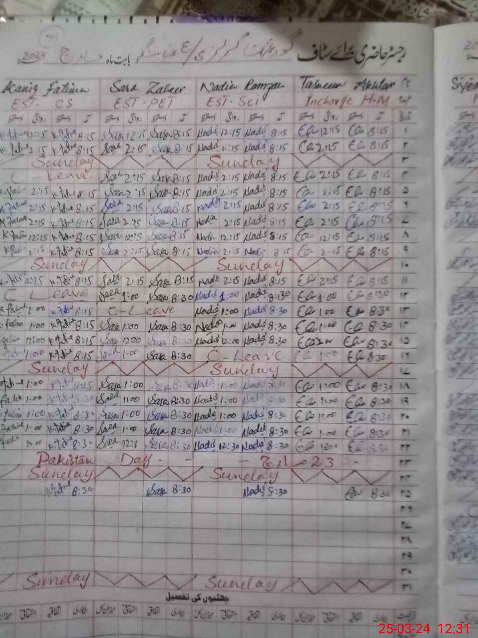 | Leave | Duty | Absent | Maternity | Medical | Ex- Pak |