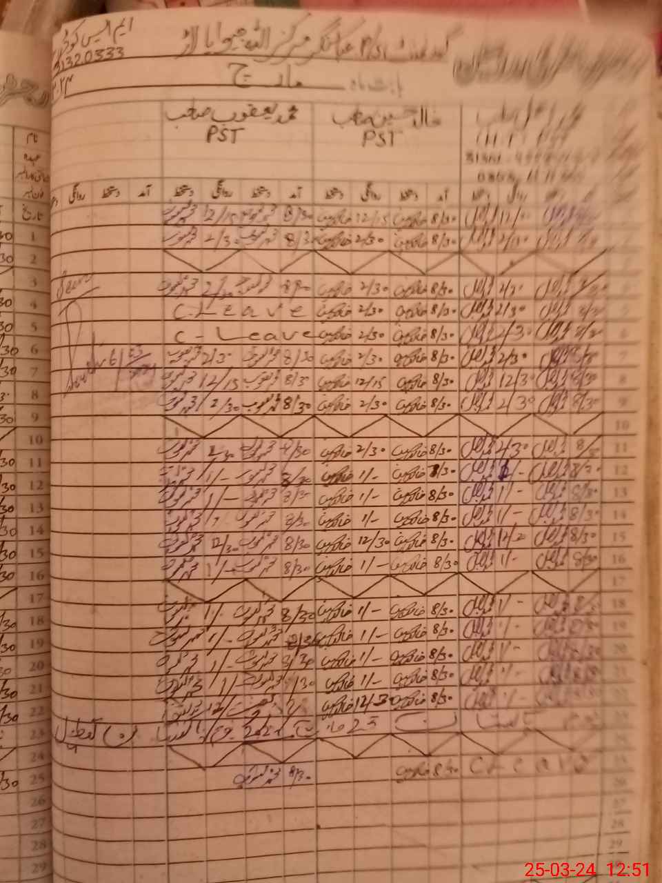 | CNIC | Full Name | Designation | R/C | Absence during last cal. month |