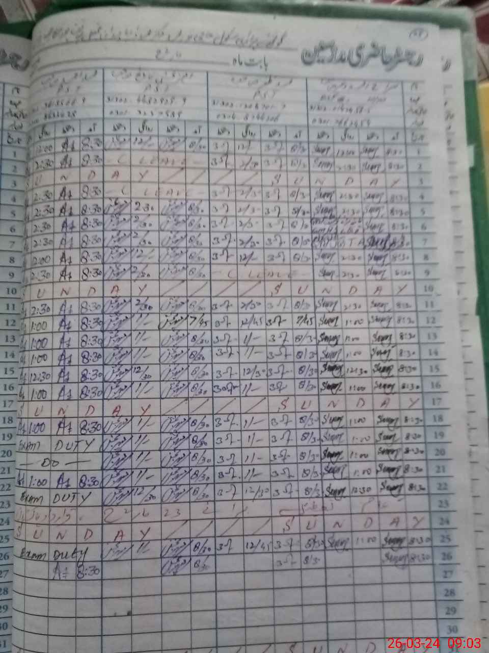 | Leave | Duty | Absent | Maternity | Medical | Ex- Pak |