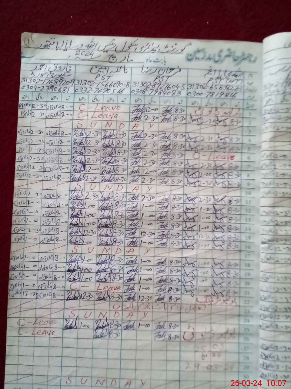 | Leave | Duty | Absent | Maternity | Medical | Ex- Pak |