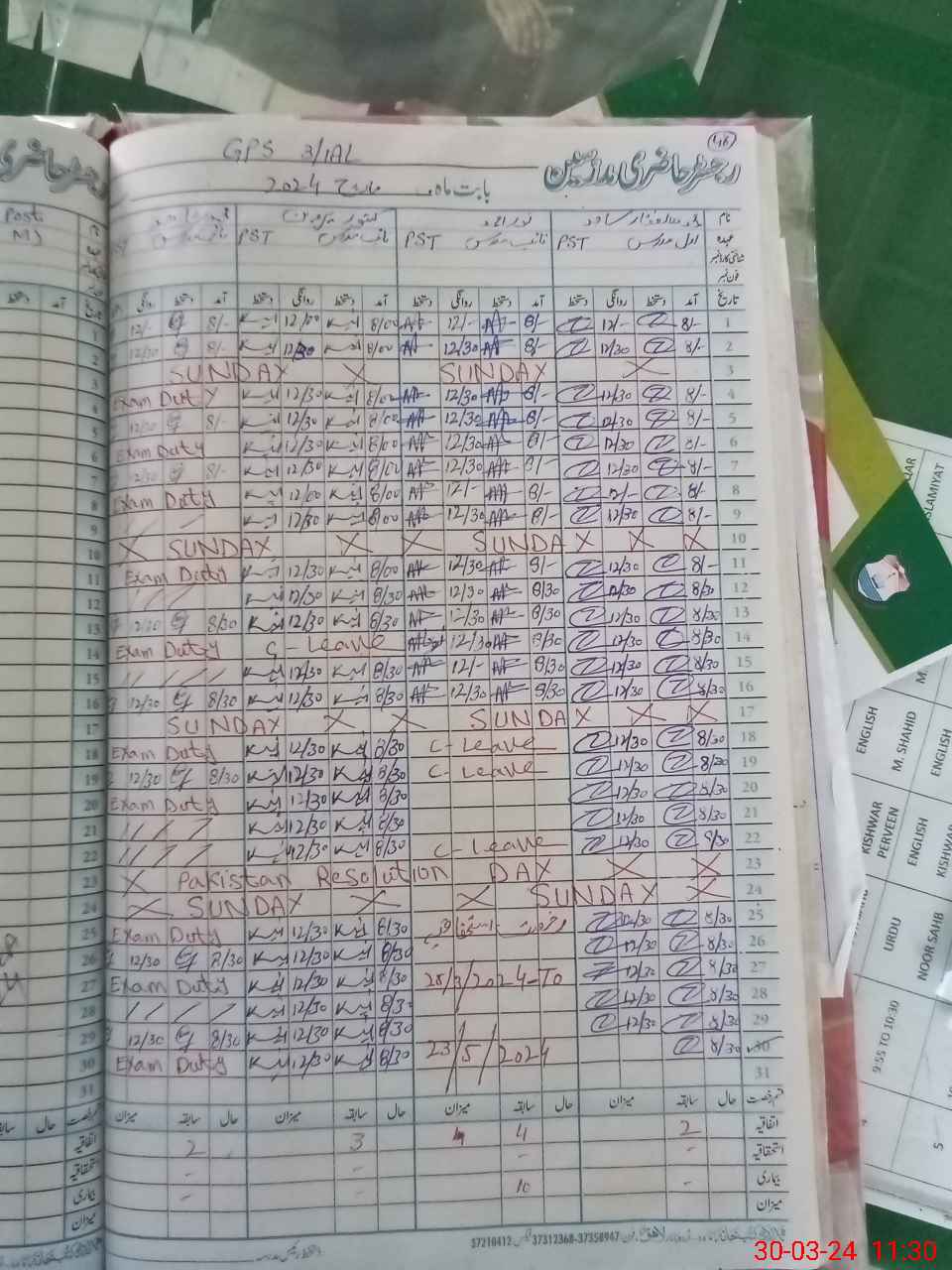 | Leave | Duty | Absent | Maternity | Medical | Ex- Pak |