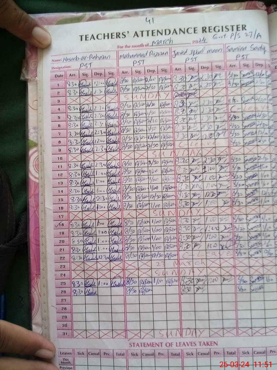 | Name: MU**** RI**** Designation: (School Headmaster's/Headmistress's) PST Phone/Cell Number: 03**** |