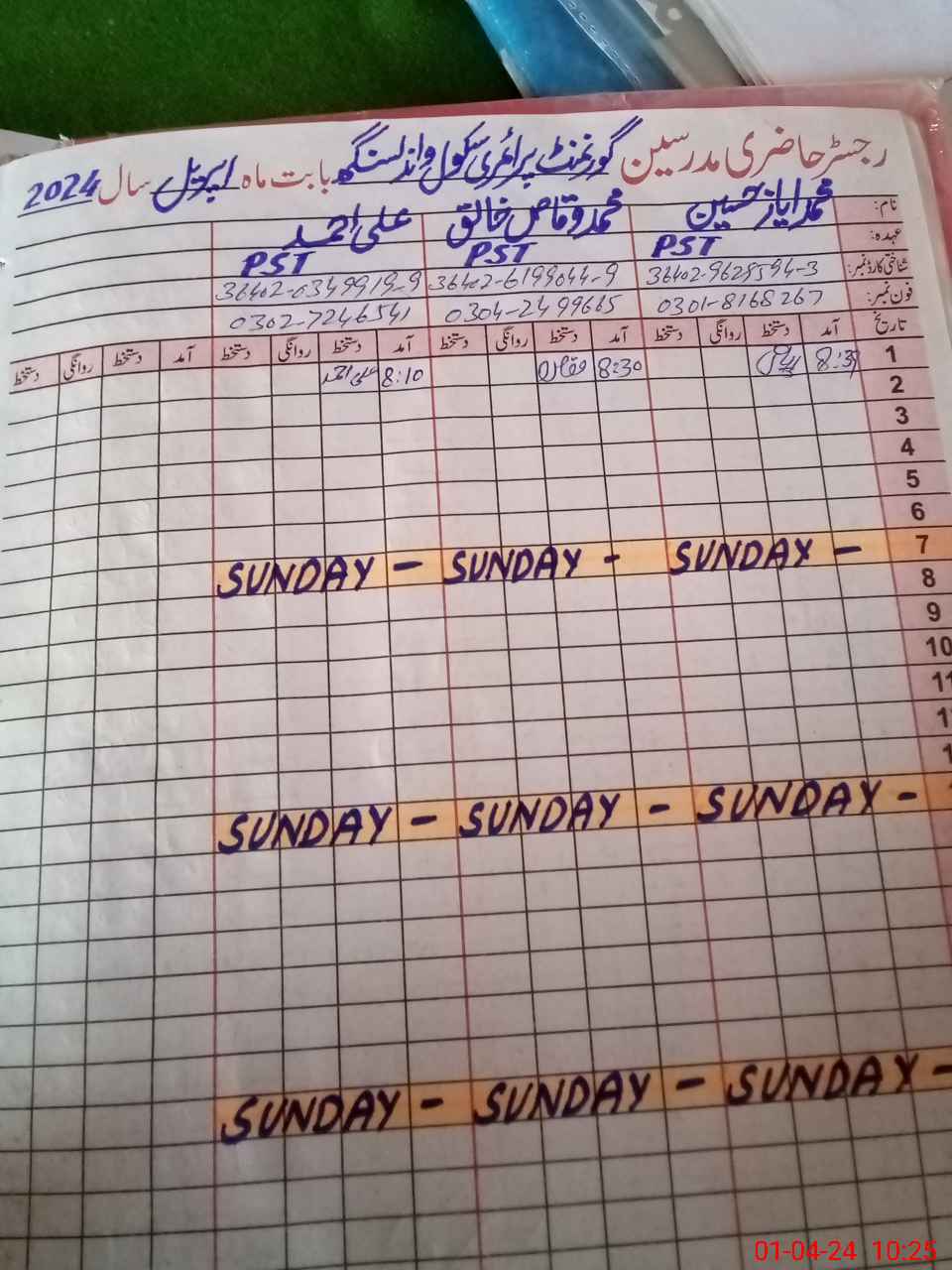 | Name: Al**** Ah**** Designation: (School Headmaster's/Headmistress's) PST Phone/Cell Number: 03**** |