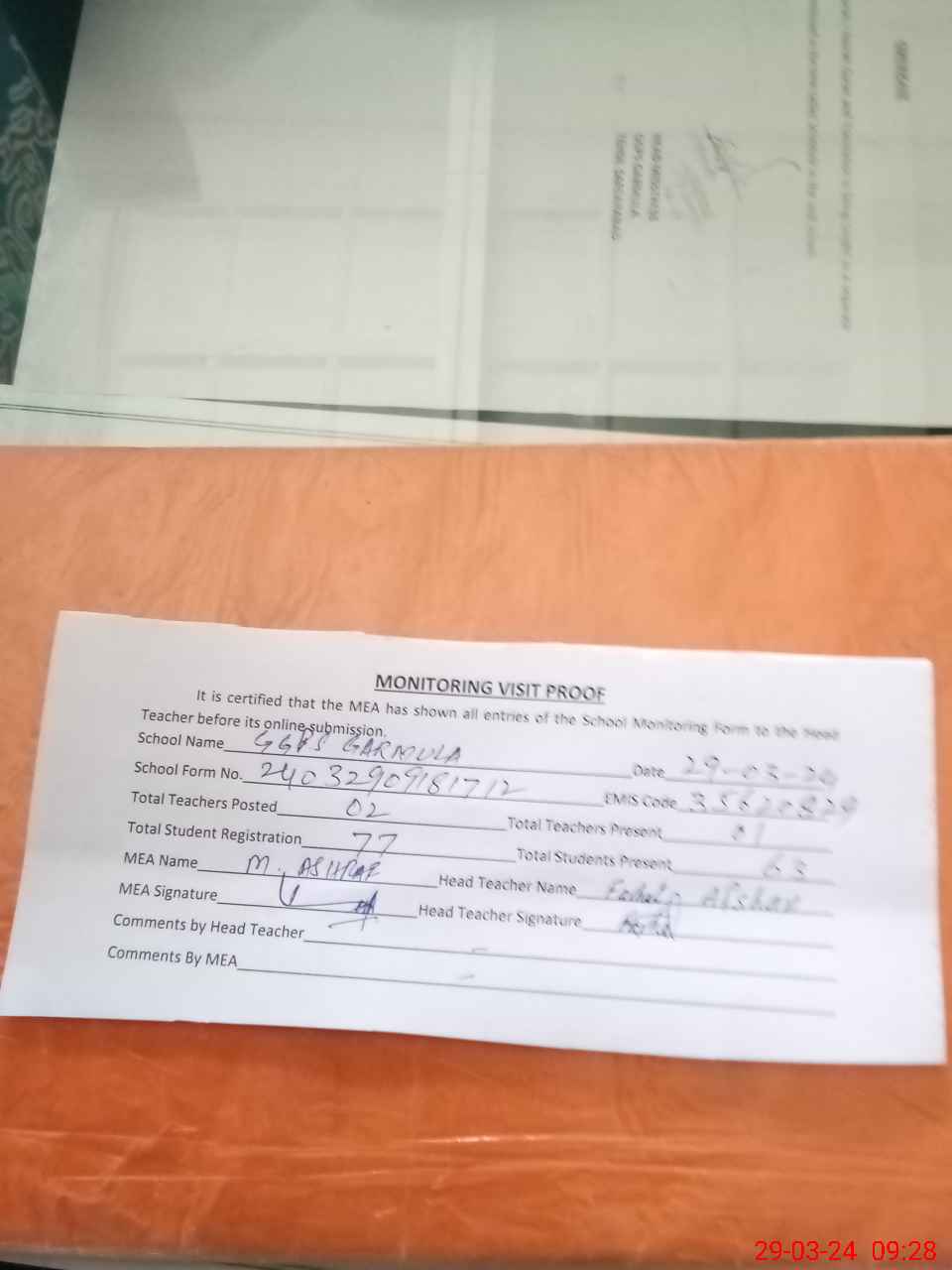 | EMIS Code: 35620829 | Name of School: GGPS GARMULA CHAK NO. 169 | |||