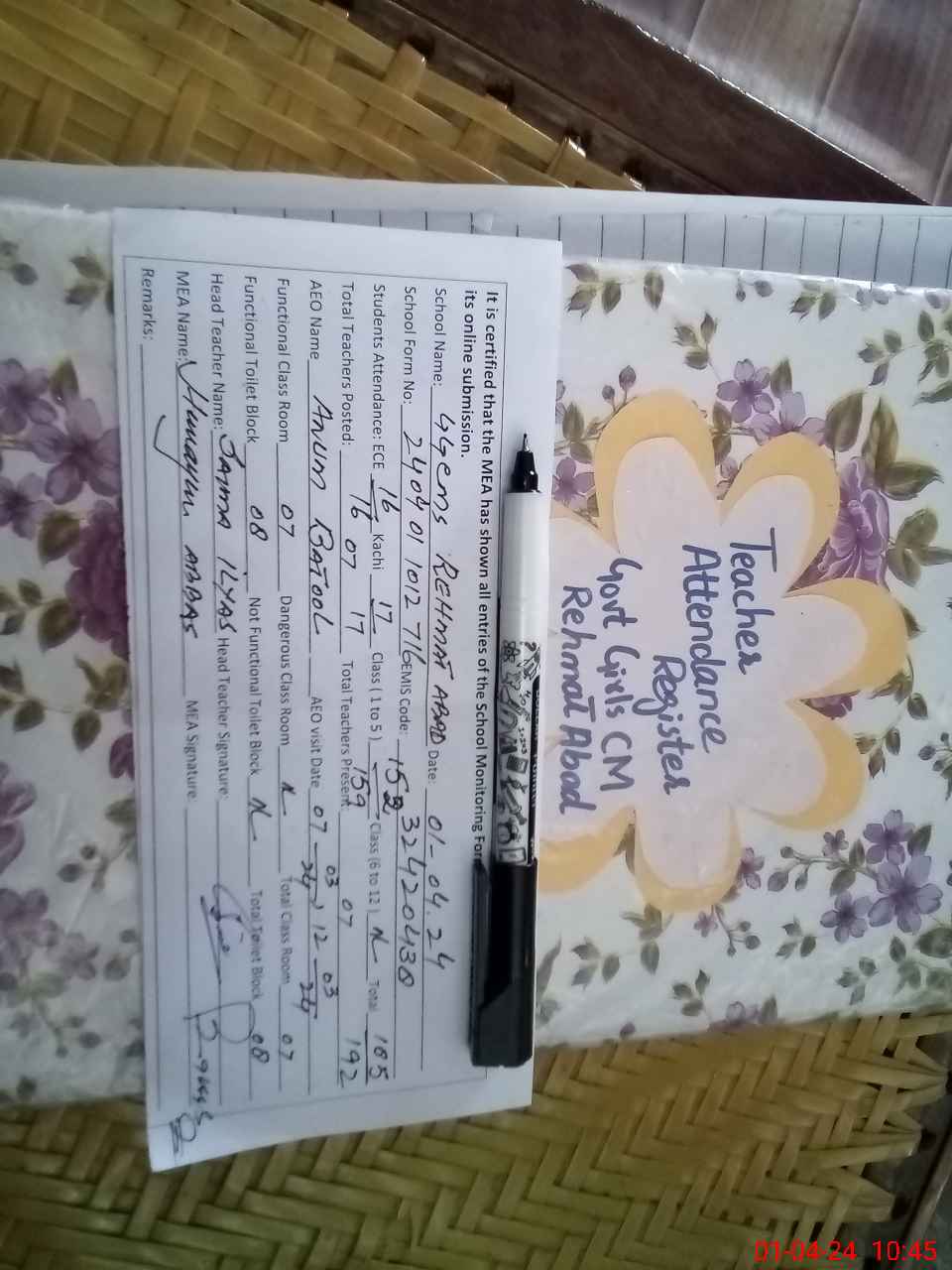 | EMIS Code: 32420438 | Name of School: GGCMS REHMAT ABAD | |||