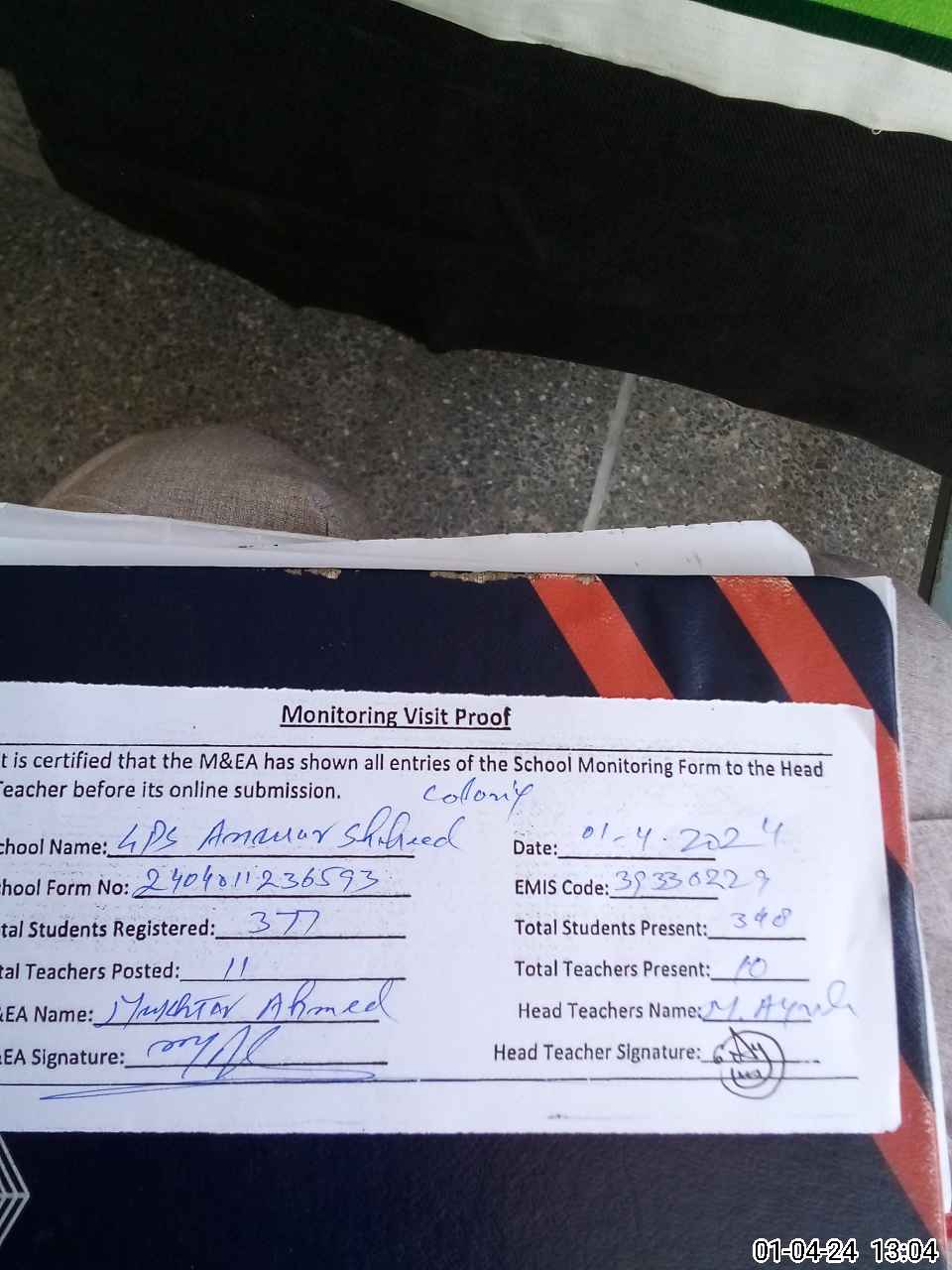 | Attendance Register | Head Teacher | MEA with School | Visit Proof |