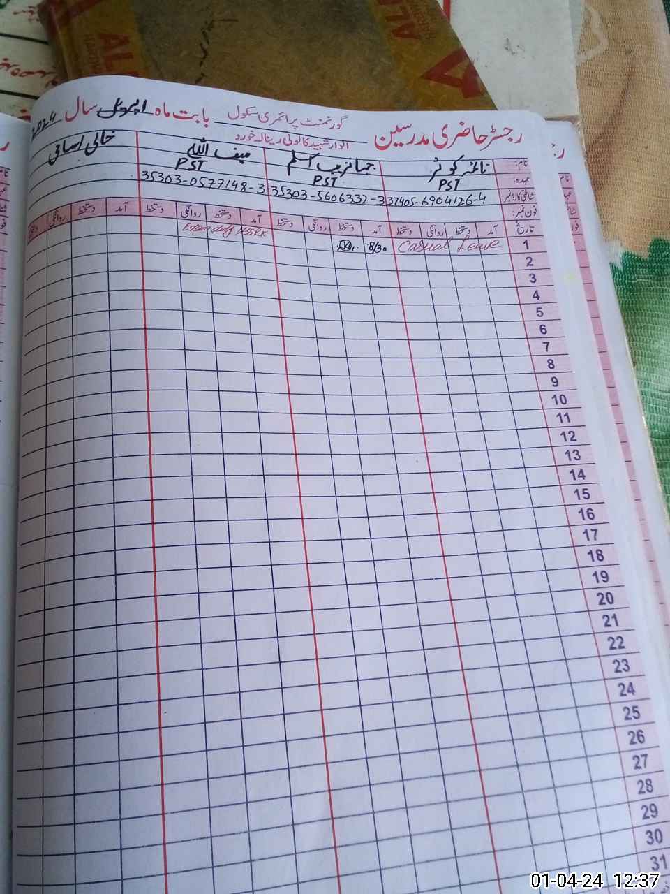 | 37**** | Na**** Ka**** | PST | Regular | 2 | 0 | 0 | 0 | 0 | 0 | 0 | 0 | 2 | Casual |