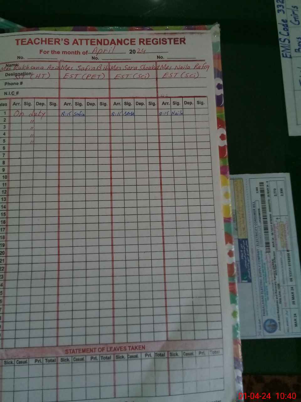 | 33**** | Ru**** Az**** | Regular | 0 | 31 | 0 | 0 | 0 | 0 | 0 | 0 | 0 | Exam Duty | |