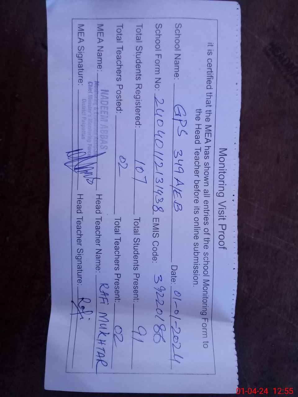 | EMIS Code: 39220186 | Name of School: GPS 349 A EB | |||