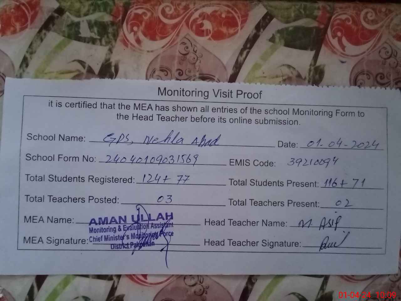 | EMIS Code: 39210094 | Name of School: GPS NEHLA ABAD P/O DHUPAI | |||