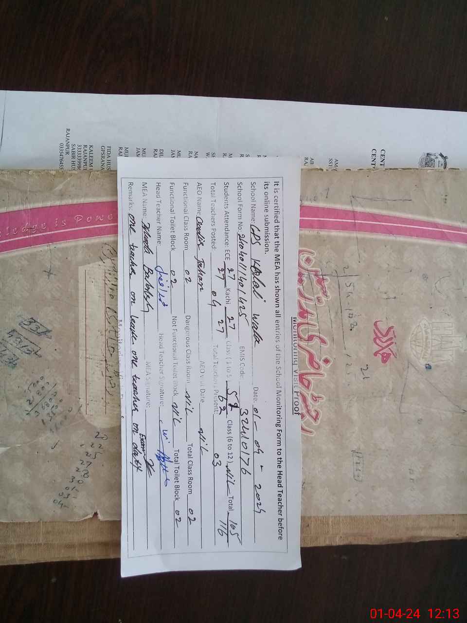| EMIS Code: 32410176 | Name of School: GPS KOLOI WALA P/O DAJAL | |||