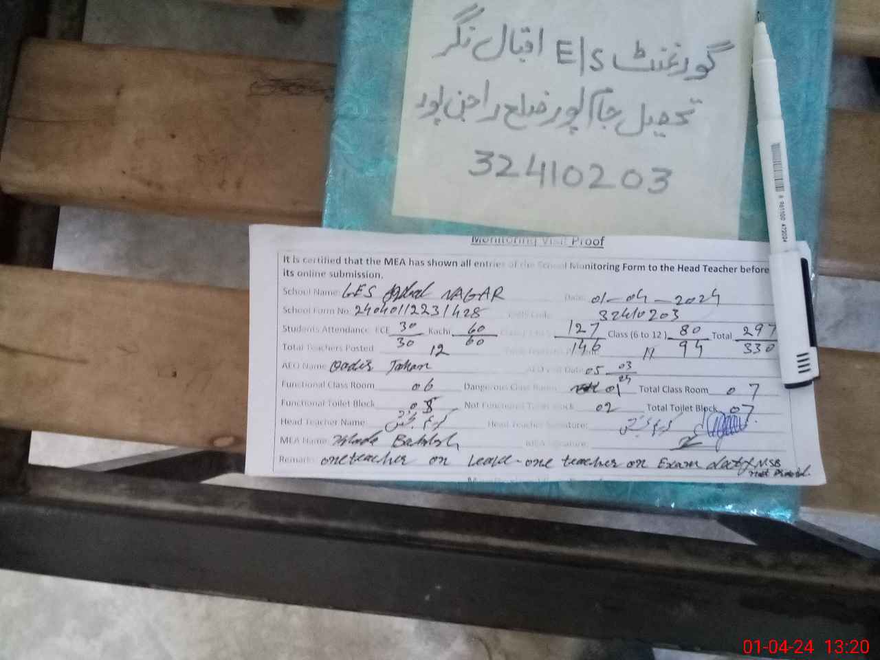 | Attendance Register | Head Teacher | MEA with School | Visit Proof |