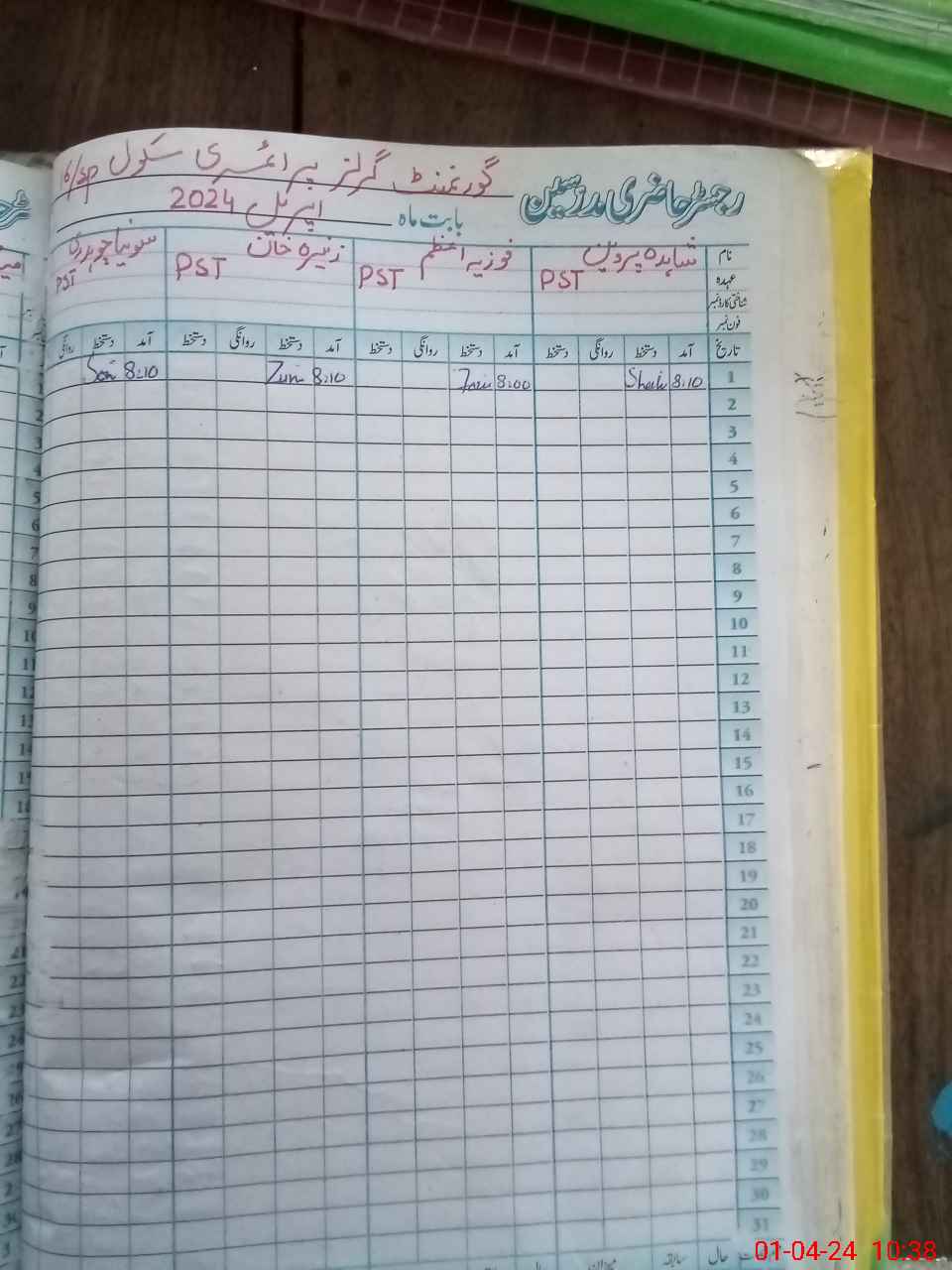 | Name: Zo**** Kh**** Designation: (School Headmaster's/Headmistress's) PST Phone/Cell Number: 03**** |