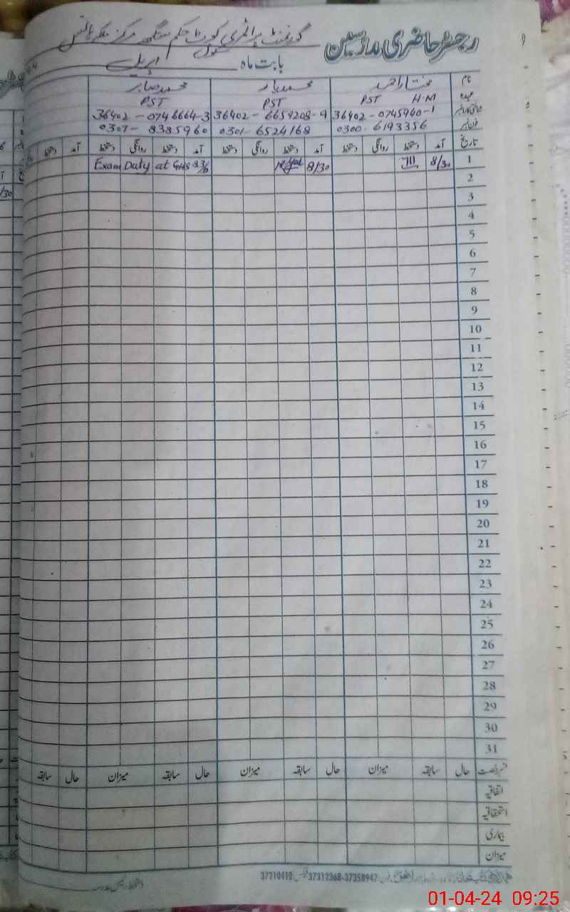 | Name: MU**** AH**** Designation: (School Headmaster's/Headmistress's) PST Phone/Cell Number: 03**** |