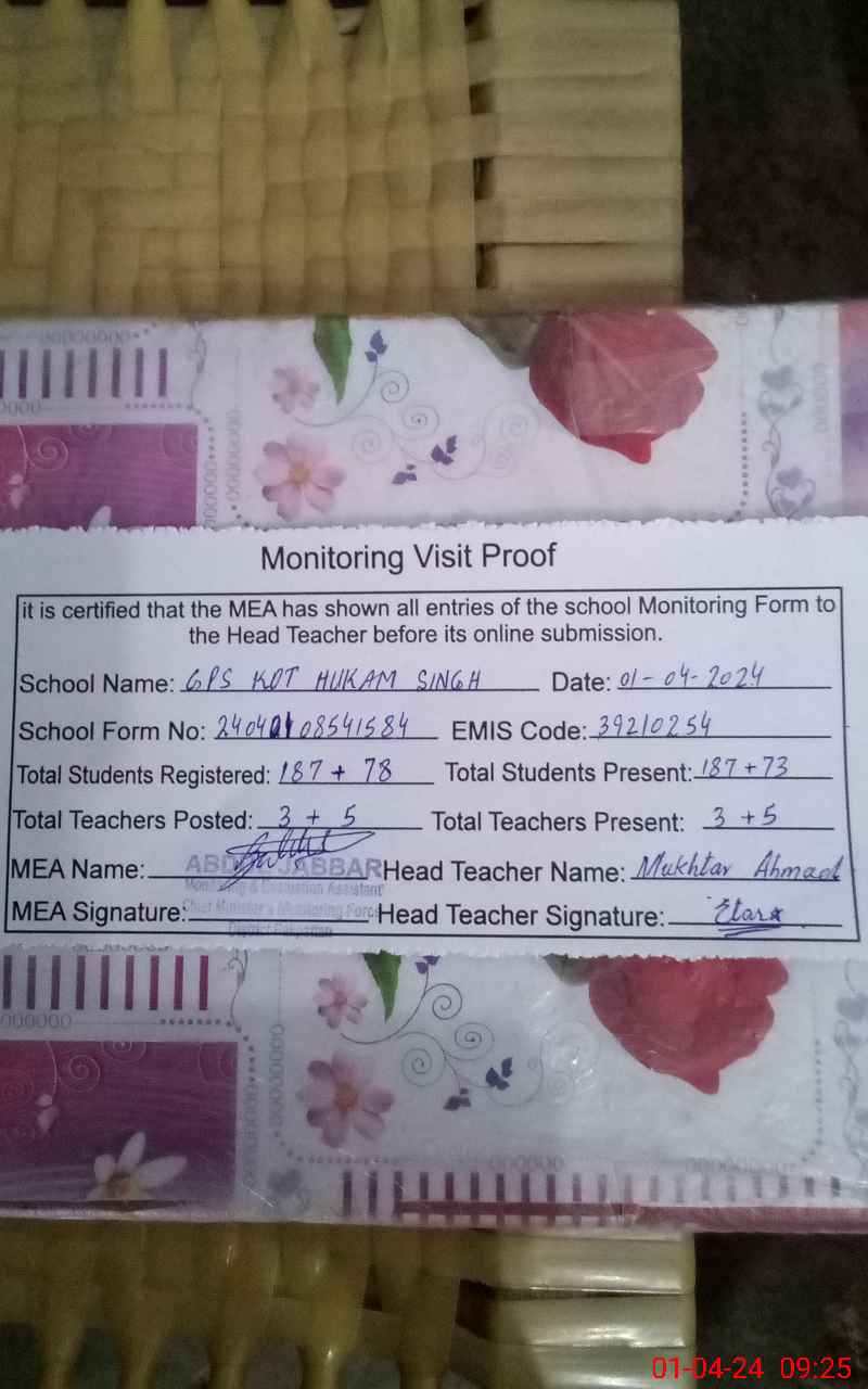 | EMIS Code: 39210254 | Name of School: GPS KOT HUKAM SINGH | |||